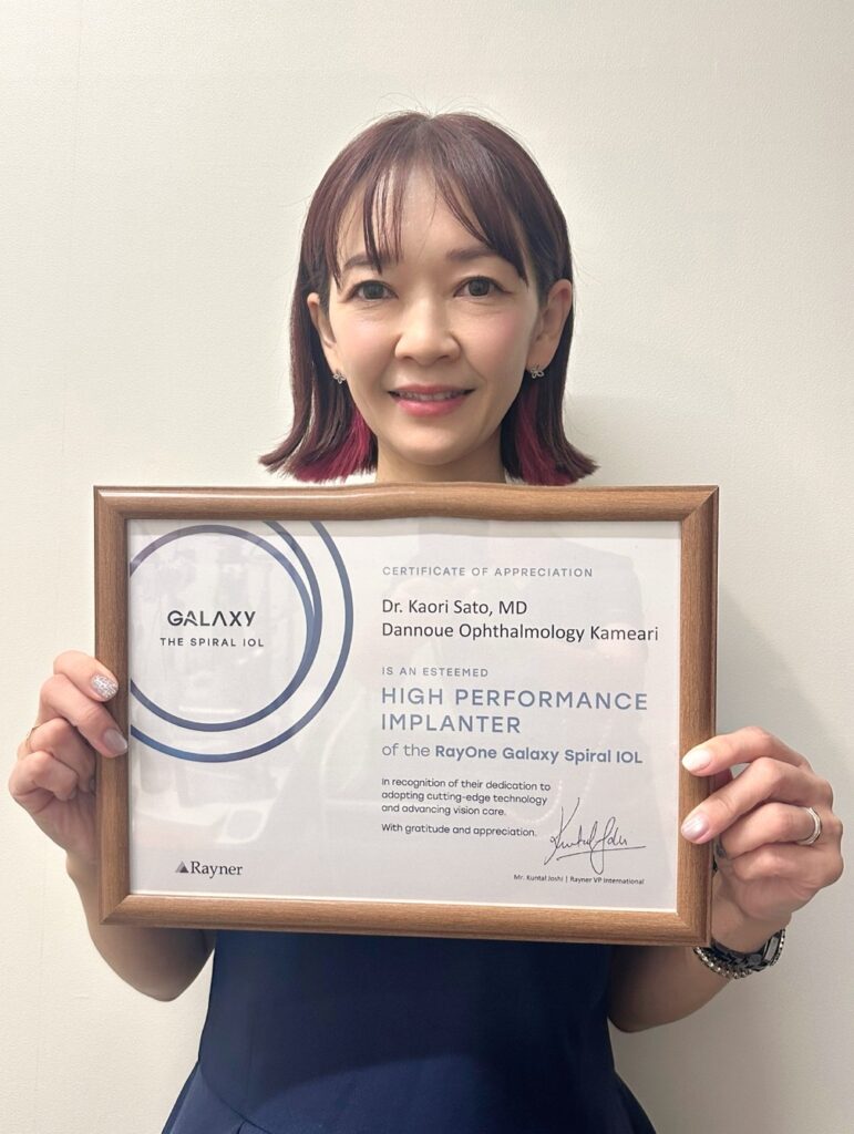 本感謝状は、Rayner社製 RayOne Galaxy Spiral IOL(眼内レンズ)